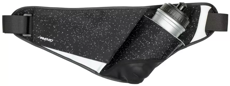Pehmustettu vyölaukku elastisella ja säädettävällä vyötäröremmillä, jossa pikalukitus. Heijastava printtaus. 2 Vetoketjullista taskua. Mukana 0,5 L juomapullo. Laukun koko 33 x 17 cm.